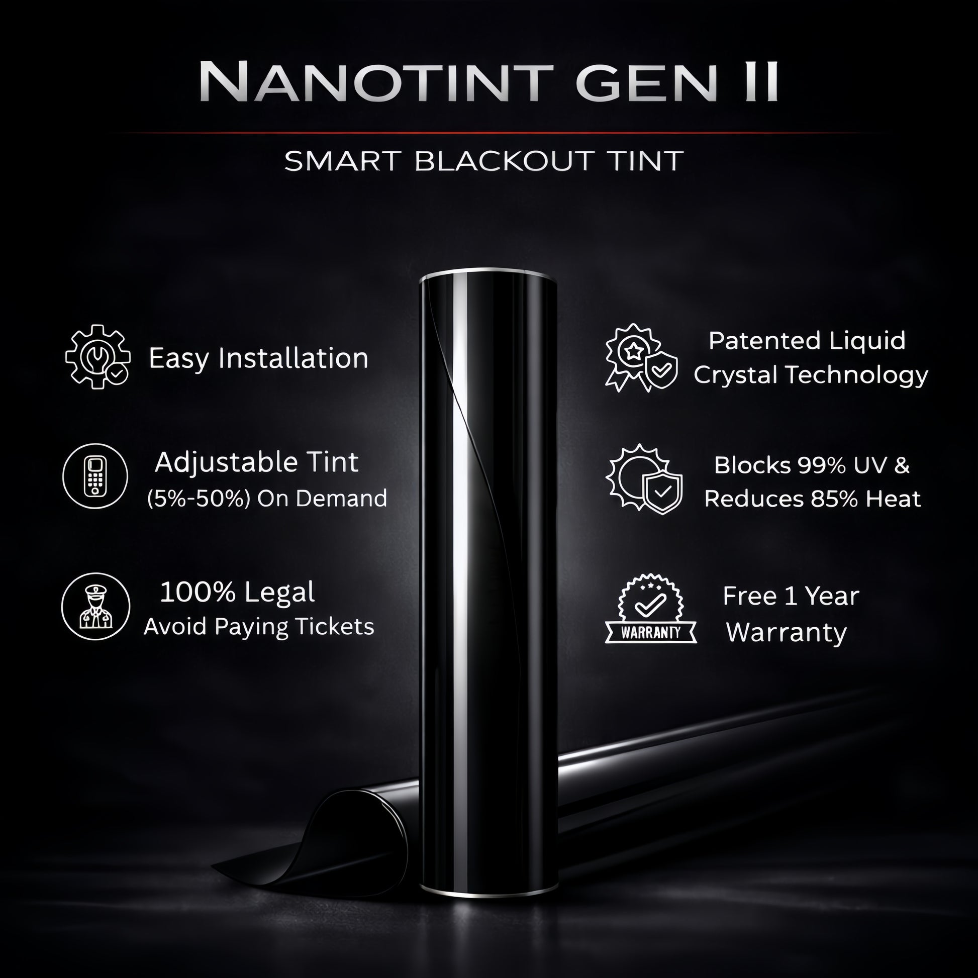 Nanotint uses high-quality film built to last many years when professionally installed. It’s designed for long-term performance and reliability.